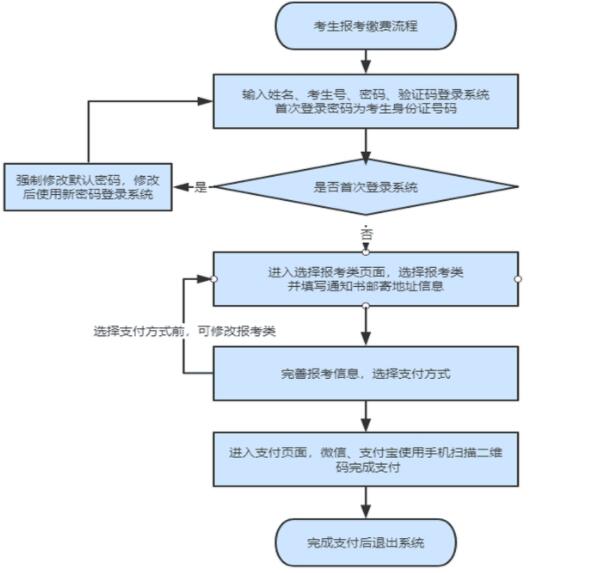 (3)考生选择考试类后进入缴纳页面,确定支付方式后,将无法修改考试类等报考信息,支付方式未确定前可返回修改。
